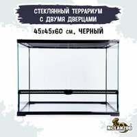 Он оснащён двумя удобными распашными дверцами, которые облегчают доступ к питомцу и позволяют проводить необходимые манипуляции, такие как кормление, уборка или установка оборудования. Дверки надежно закрываются при помощи прочного замка. Это минимизирует возможность побега животного из его дома. Террариум оборудован системой проточной вентиляции, которая обеспечивает постоянный приток свежего воздуха. Это помогает предотвратить накопление влаги и поддерживает здоровый микроклимат внутри террариума. Съемная крышка с металлической вентиляционной сеткой исключает побеги рептилии или живого корма, но позволяет воздуху свободно попадать внутрь. Над сеткой удобно размещать лампы обогрева и освещения, давая доступ теплу или ультрафиолетовым лучам внутрь жилища. Это особенно важно для рептилий, которые нуждаются в UVB-излучении для синтеза витамина D3. Стеклянные стенки обеспечивают отличный обзор, позволяя наблюдать за жизнью питомца. Прозрачное стекло легко чистится, что позволяет поддерживать идеальный порядок. Черный цвет террариума придаёт ему современный и стильный вид, который отлично впишется в любой интерьер. Он станет не только домом для вашего питомца, но и элементом квартирного декора.