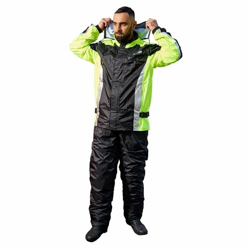 Мотодождевик раздельный МСР Alligator• Основа - 100% полиэстер; покрытие - 100% полиуретан;• Водонепроницаемая (10000/10000), дышащая мембрана;• Проклеенные швы;• Дышащая подкладка-сетка в куртке и штанах;• Основная застёжка-молния, закрывается по всей длине на липучку;• Капюшон затягивается шнурком, воротник застёгивается на кнопку;• Эластичные герметичные манжеты на рукавах фиксируются липучкой;• Низ куртки утягивается ремешками;• Два водонепроницаемых кармана на молнии;• Капюшон складывается внутрь воротника;• Штаны на резинке сверху обеспечивают удобство надевания/снятия;• Низ штанин утягивается молнией с липучкой для удобства надевания мотобот;• Яркий светоотражающий верх, светоотражающие вставки в нижней части штанин;• В комплекте – сумка для хранения.