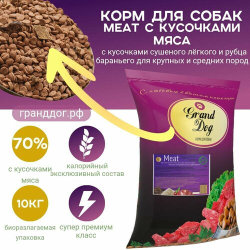 Корм Meat для средних и крупных пород с кусочками мясопродуктов бараньих ( легкое и рубец)