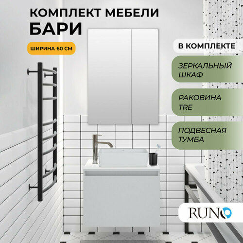 Купить Мебель для ванной Бари 60, белая (тумба с раковиной Tre, зеркало Лада) с доставкой по всей России.