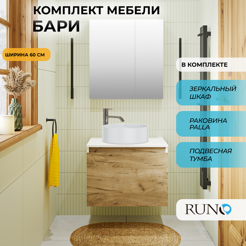 Купить Мебель для ванной Бари 60, крафтовый дуб (тумба с раковиной Palla, зеркало Лада) с доставкой по всей России.