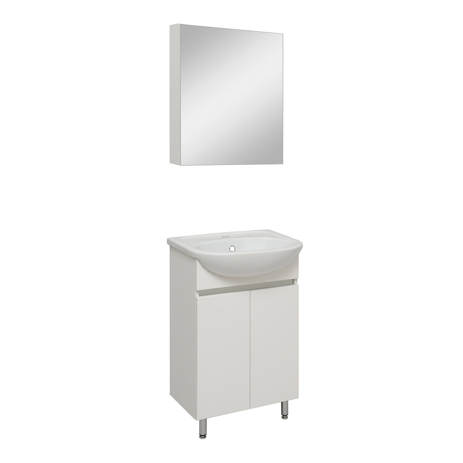 Мебель для ванной Лада 50, белая (тумба с раковиной, шкаф с зеркалом)
