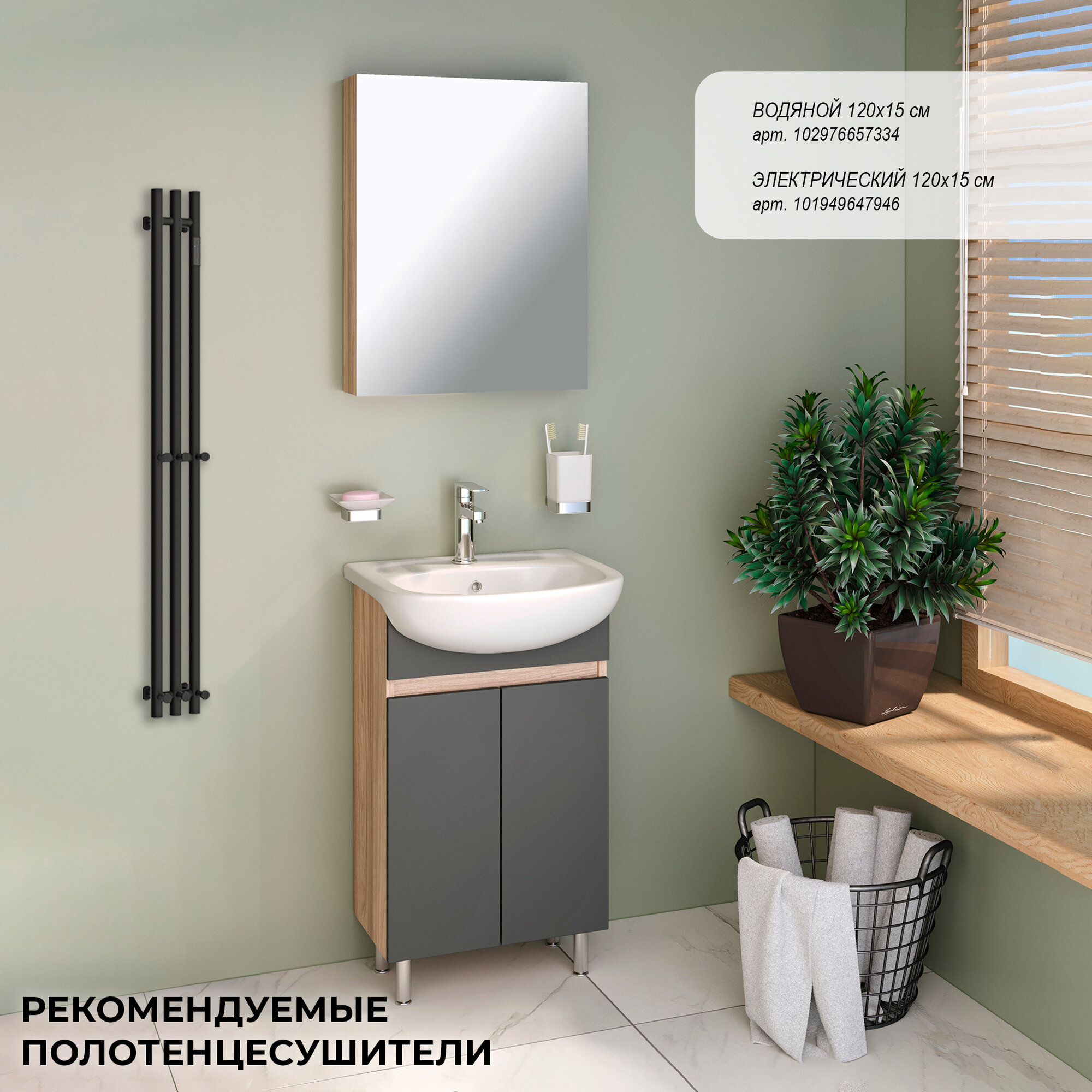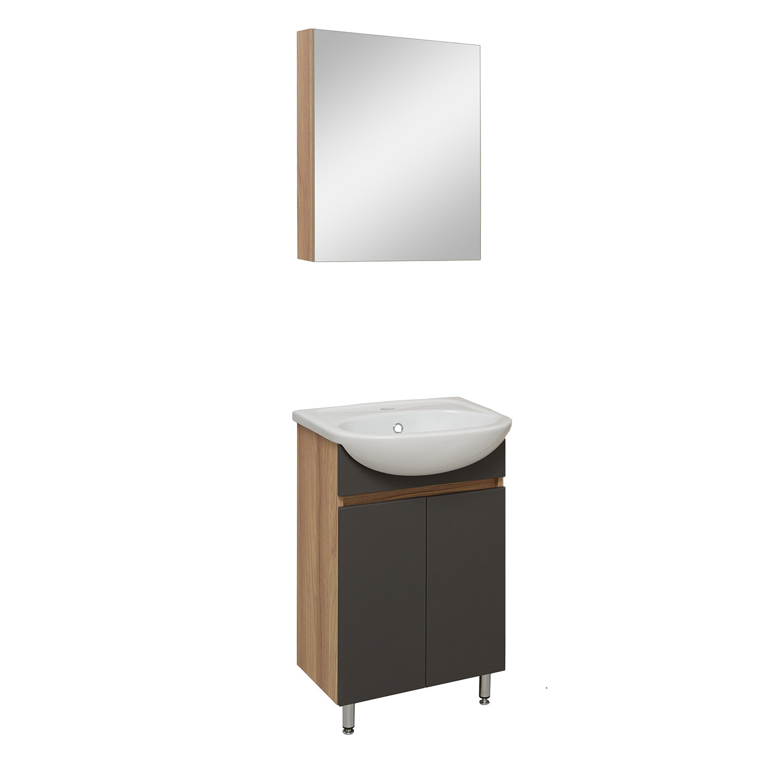 Мебель для ванной Лада 50, графит (тумба с раковиной, шкаф с зеркалом)