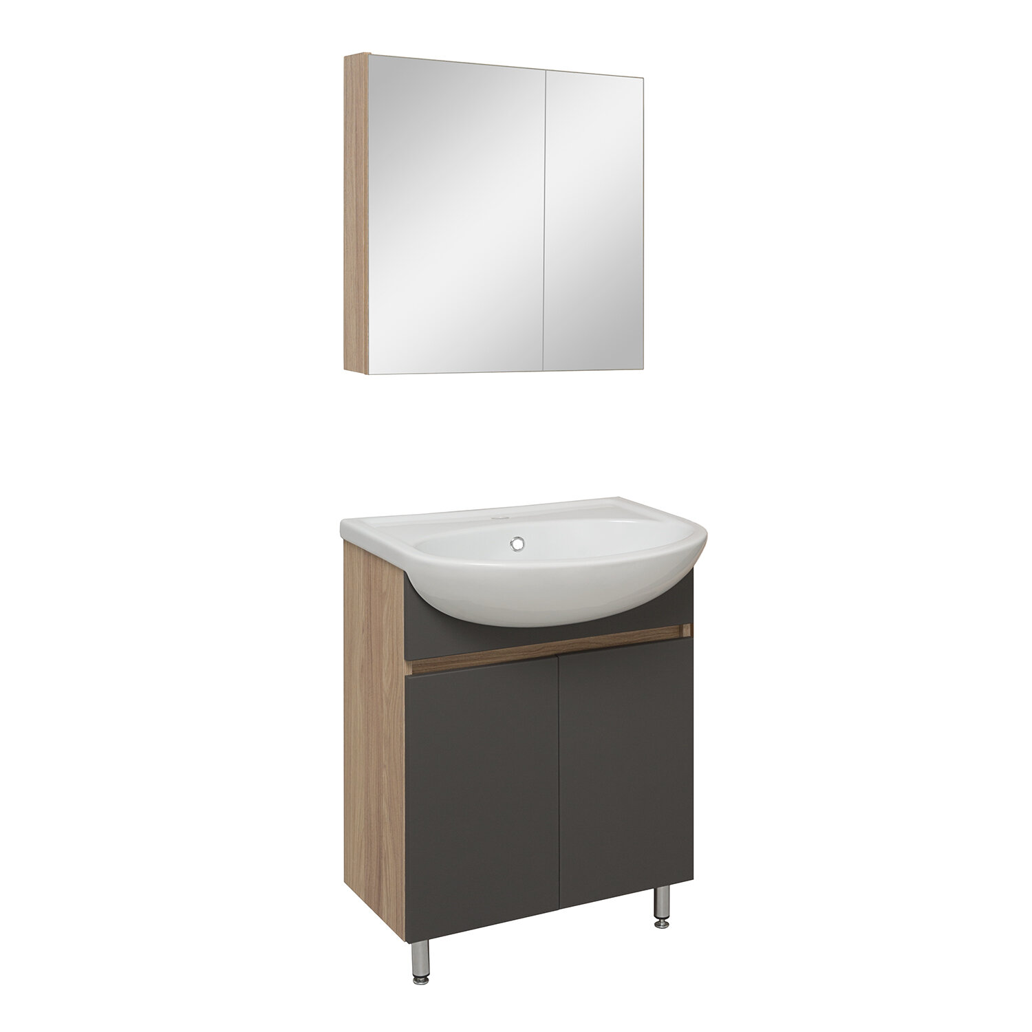 Мебель для ванной Лада 60, графит (тумба с раковиной, шкаф с зеркалом)