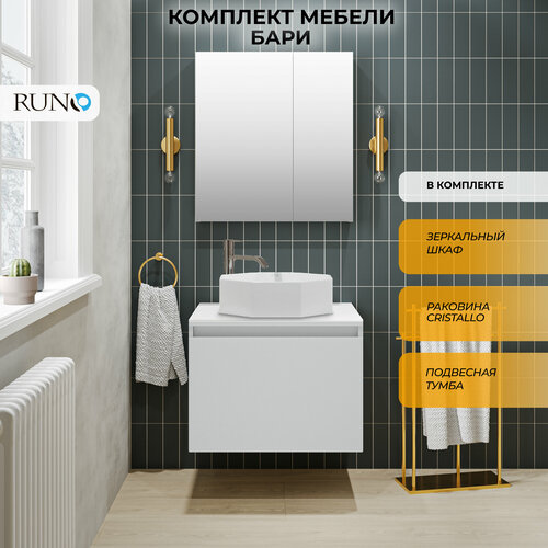 Купить Мебель для ванной Runo Бари 60, белая, с раковиной Cristallo, зеркало Лада 60 с доставкой по всей России.