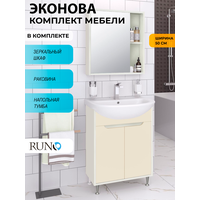 Купить Мебель для ванной Runo ЭкоНова 50, белый-кремовый, тумба с раковиной Уют 50, шкаф-зеркало с доставкой по всей России.