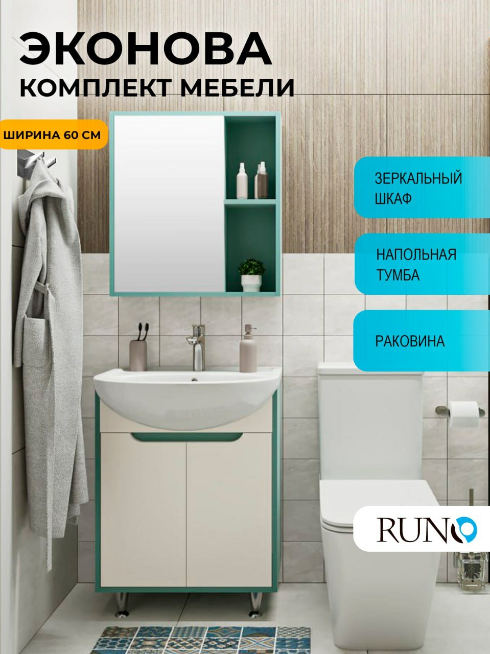 Мебель для ванной Runo ЭкоНова 60, бирюзовый-белый, тумба с раковиной Уют 60, шкаф-зеркало: сравнение цен, характеристики, фото, актуальное наличие и цены.