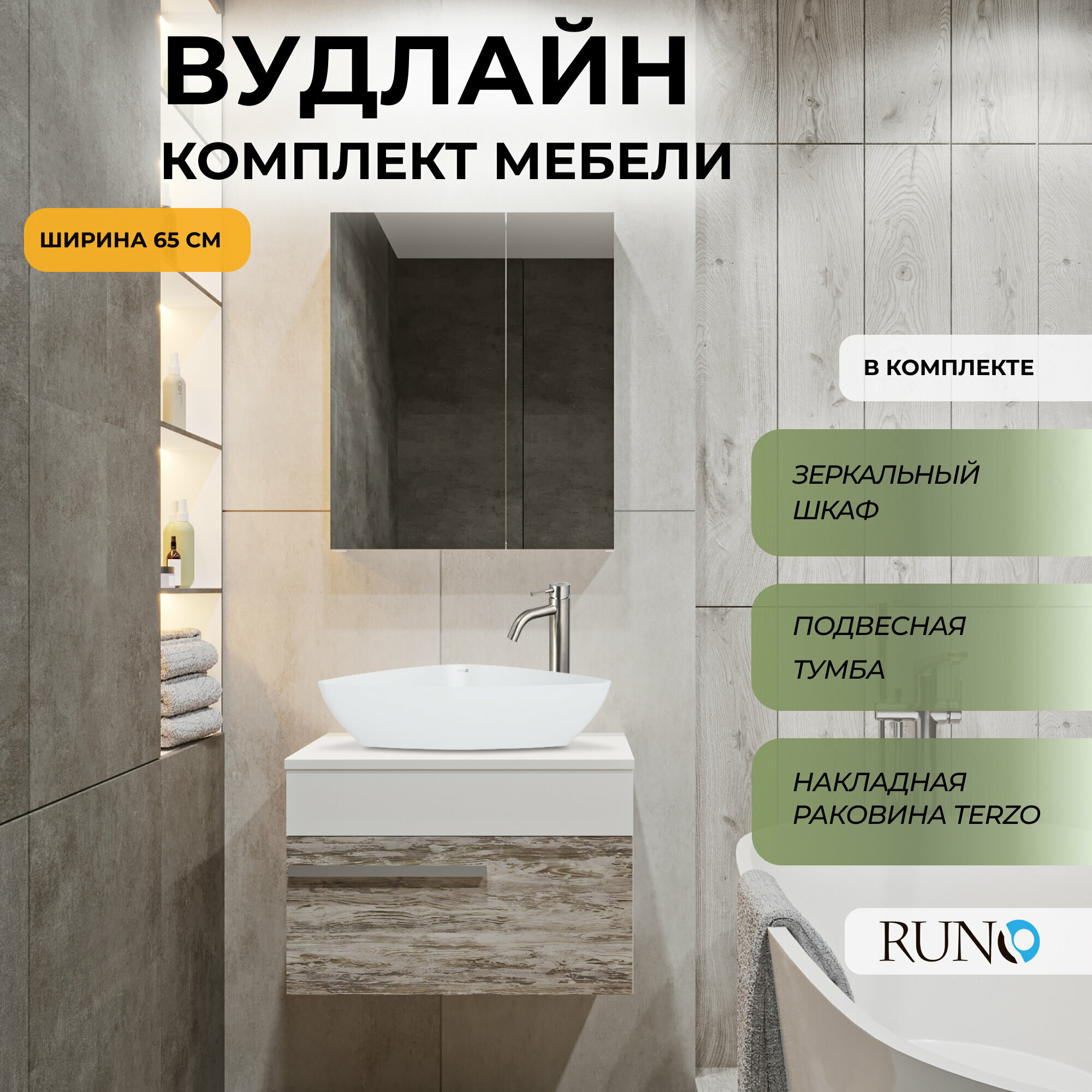 Купить Мебель для ванной Runo Вудлайн 65, скандинавский дуб (тумба подвесная с раковиной Terzo, зеркальный шкаф Лада 60 белый) с доставкой по всей России. Мебель для ванной Runo Вудлайн 65, скандинавский дуб (тумба подвесная с раковиной Terzo, зеркальный шкаф Лада 60 белый): сравнение цен, характеристики, фото, актуальное наличие и цены.