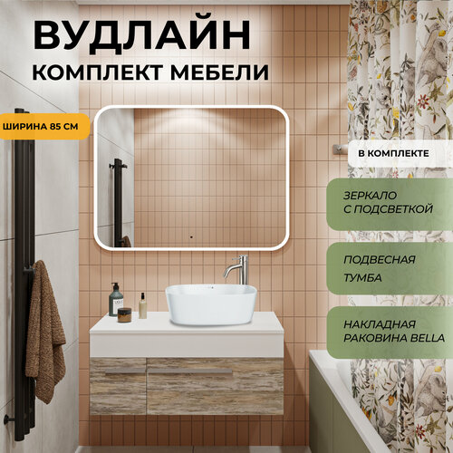 Купить Мебель для ванной Runo Вудлайн 85, скандинавский дуб (тумба подвесная с раковиной Bella, зеркало Руан 100х80) с доставкой по всей России. Мебель для ванной Runo Вудлайн 85, скандинавский дуб (тумба подвесная с раковиной Bella, зеркало Руан 100х80): сравнение цен, характеристики, фото, актуальное наличие и цены.