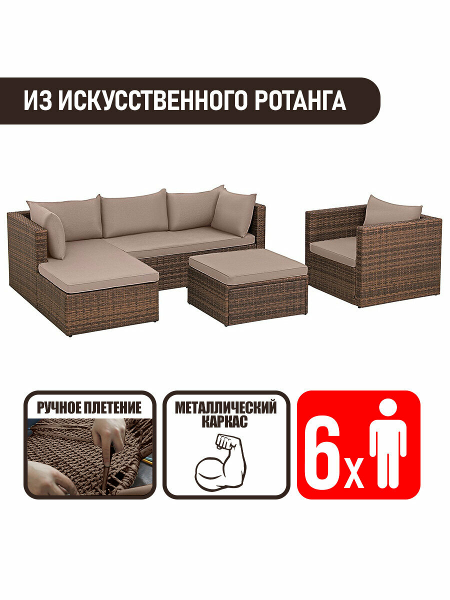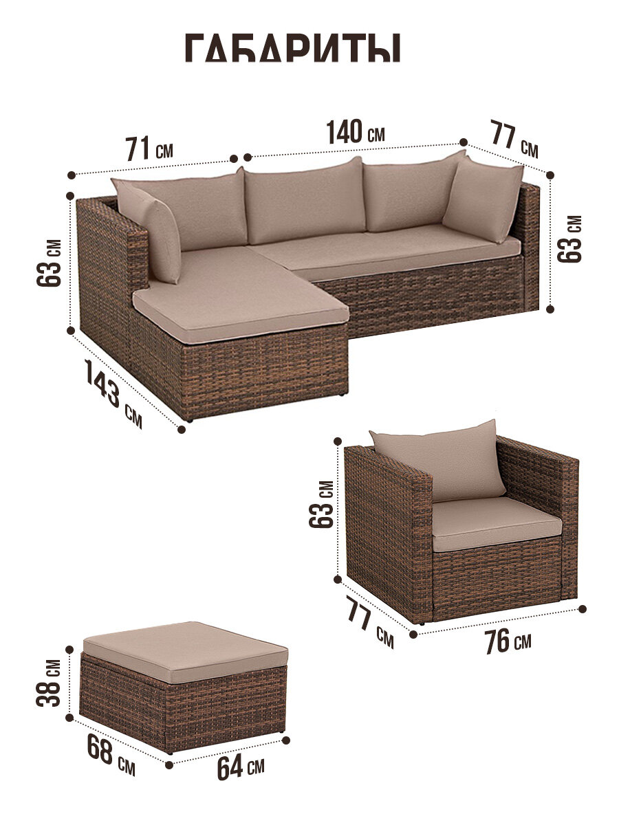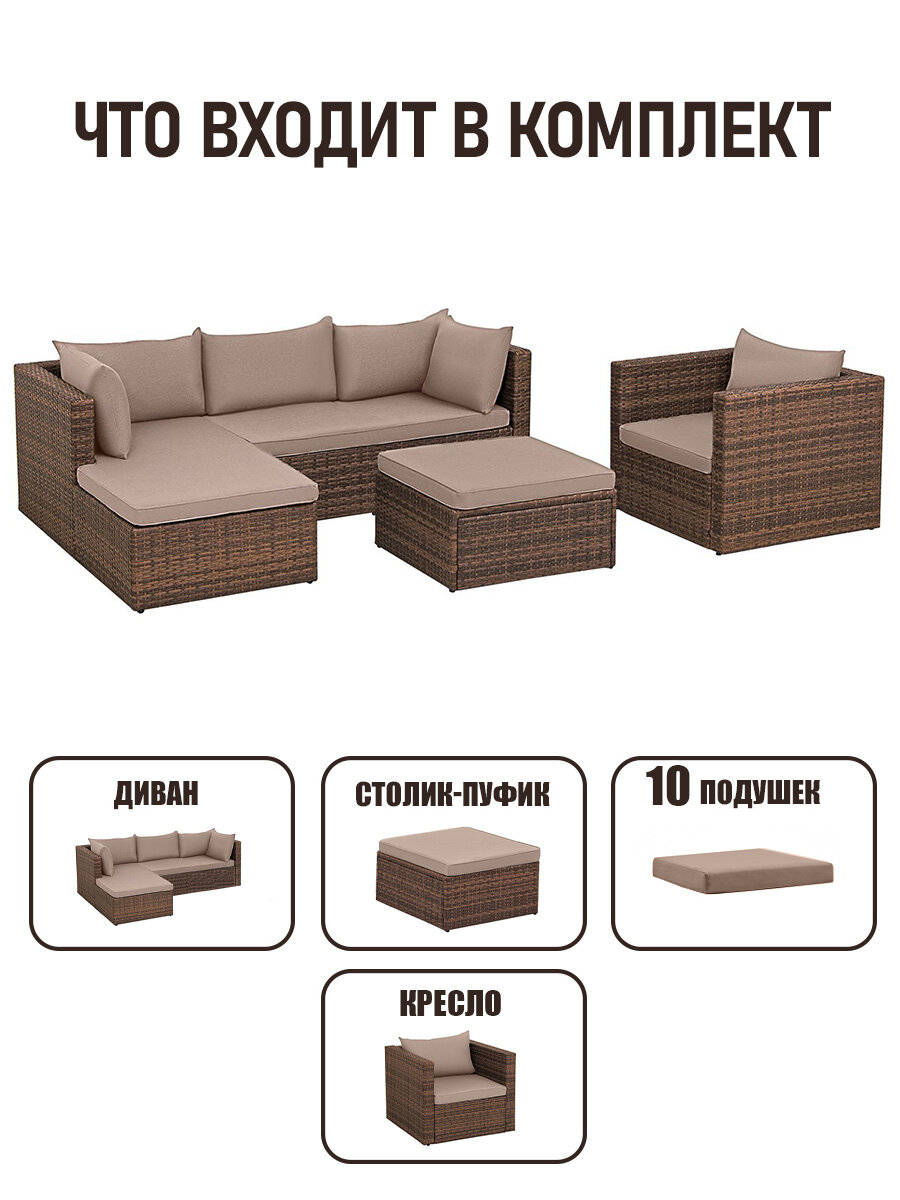 Комплект мебели из искусственного ротанга Гардини Релакс, для дачи и сада, коричневый: сравнение цен, характеристики, фото, актуальное наличие и цены.