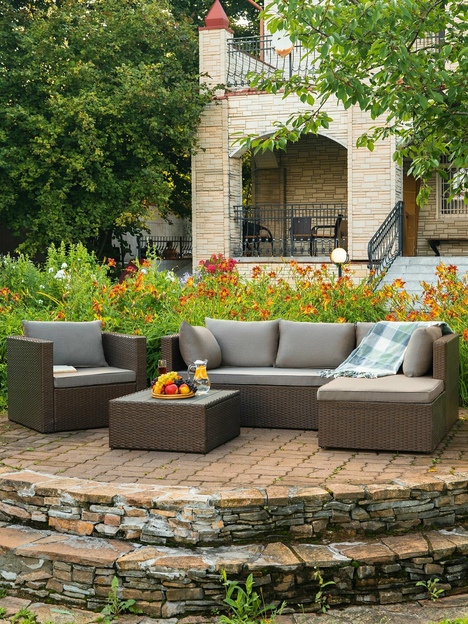 Комплект Гардини Релакс выполнен в стиле минимализм, с применением дорогих материалов: фактурный искусственный ротанг как натуральный, добротная водоотталкивающая ткань приятная на ощупь. На мебель Гардини приятно смотреть, а главное - очень уютно сидеть, расслабиться на отдыхе.