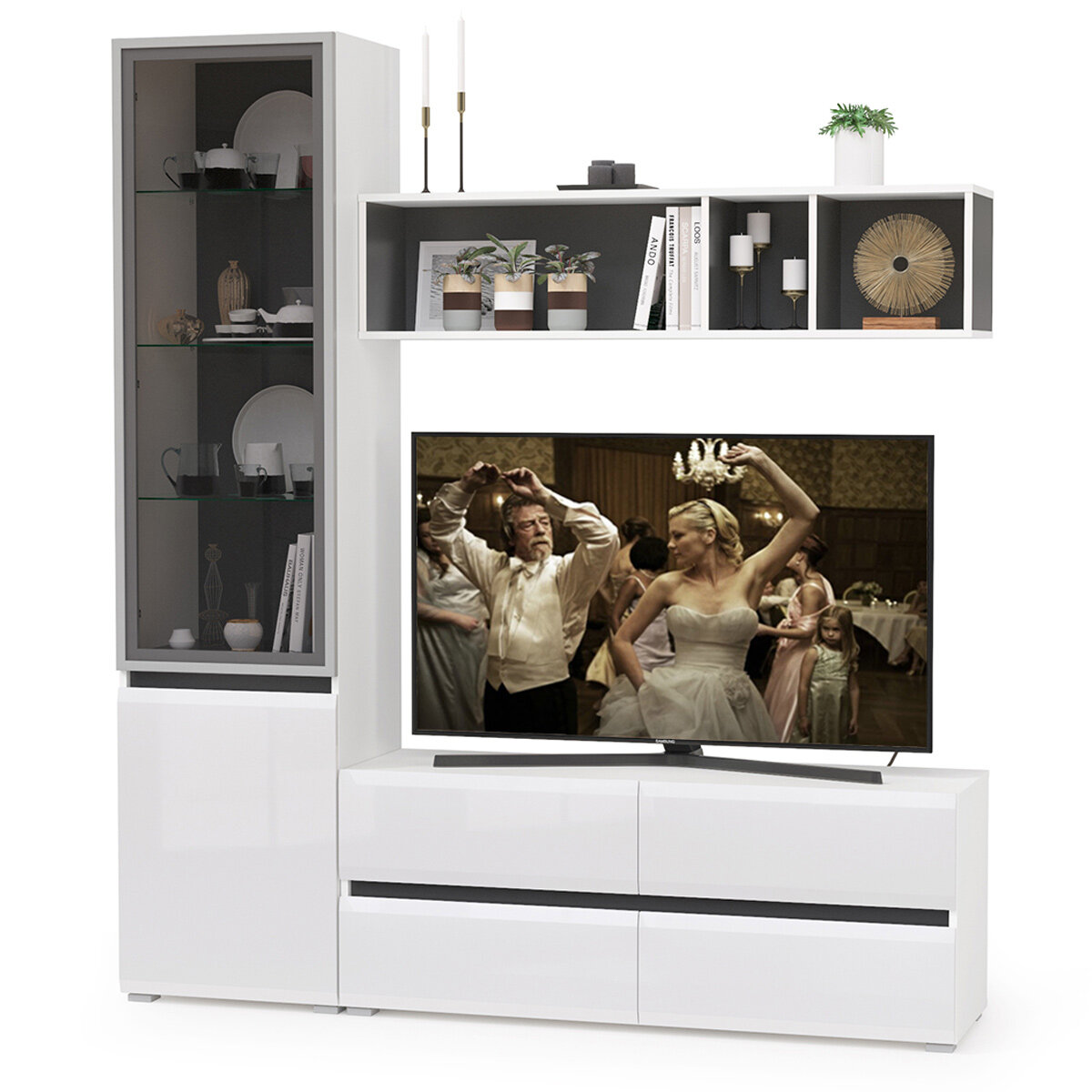Мебельная глянцевая Мини-Стенка для гостиной под телевизор 180см белый/чёрный/МДФ белый глянец — НЖ1571: сравнение цен, характеристики, фото, актуальное наличие и цены.