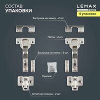 Комплект мебельных петель LEMAX PROF FH132, 8 шт. Материал изготовления: сталь. Диаметр чашки 35 мм.