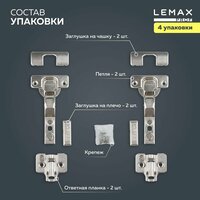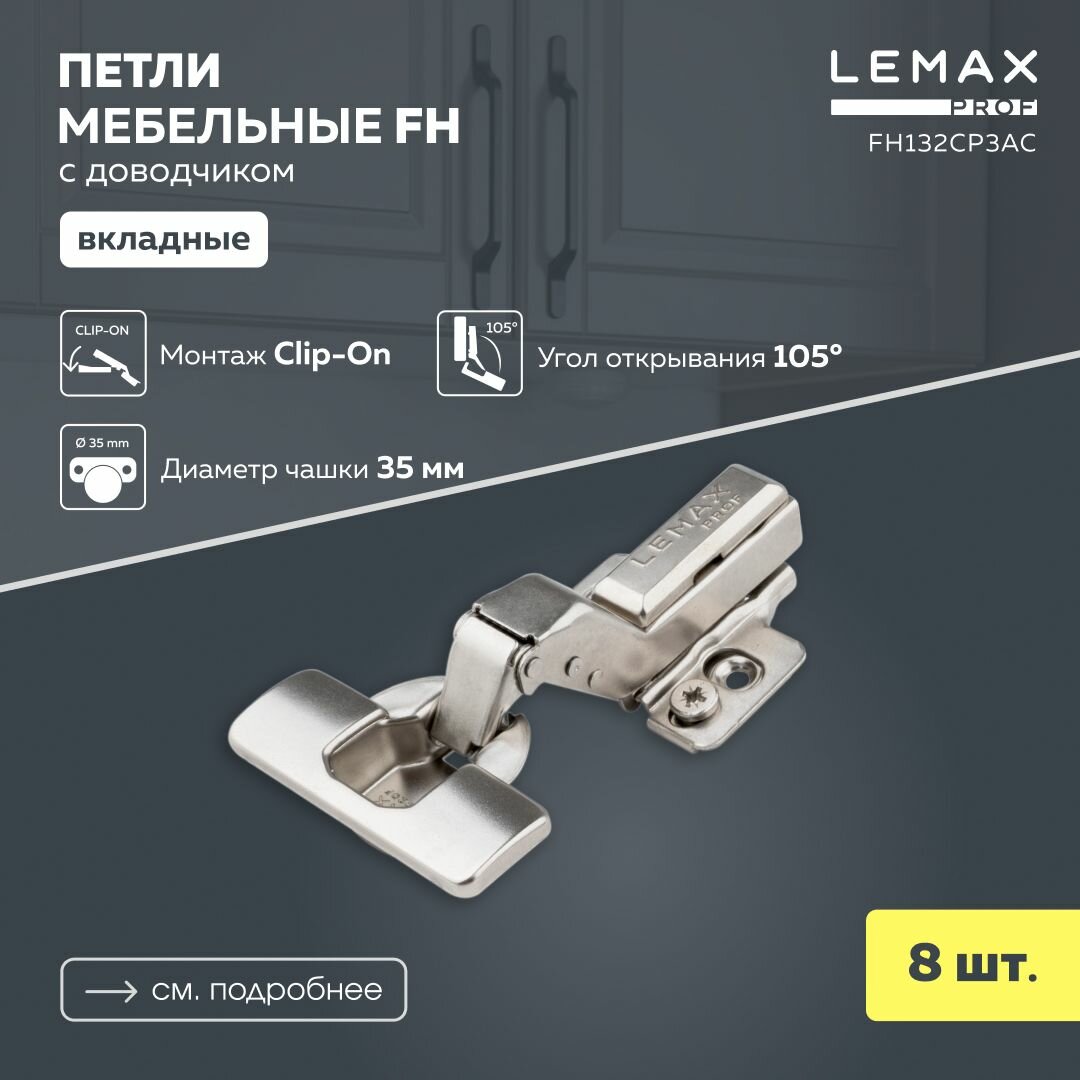 Комплект мебельных петель LEMAX PROF FH132, 8 шт. Материал изготовления: сталь. Диаметр чашки 35 мм.