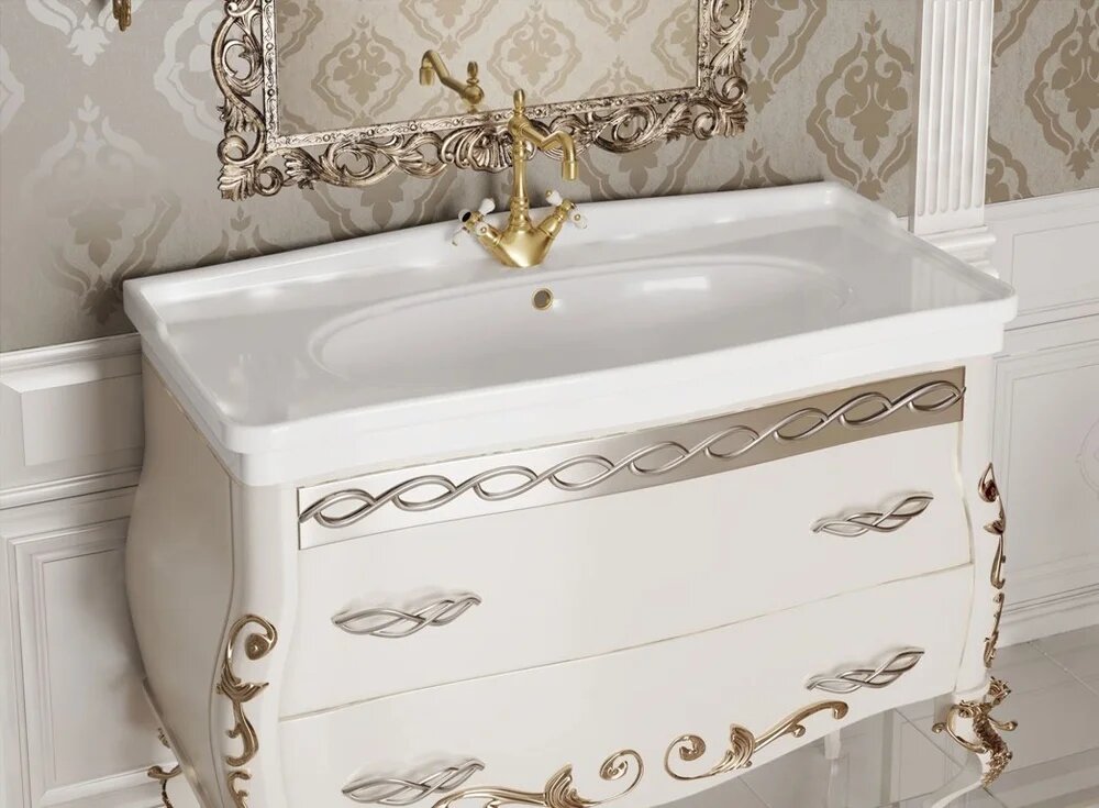 Купить Мебельная раковина Kirovit Модерн 105 фаянсовая, раковина для ванной, белая, прямоугольная с доставкой по всей России.