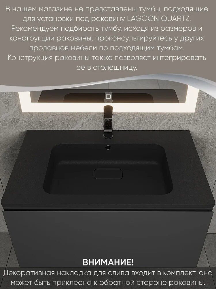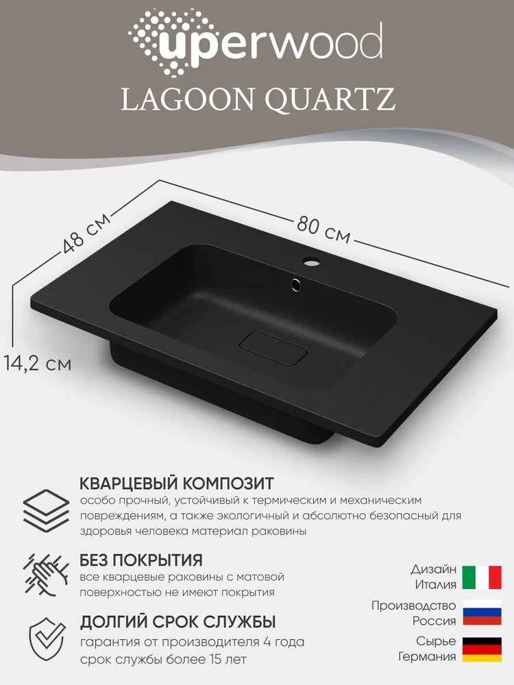 Мебельная раковина Uperwood Lagoon Quartz 80 из кварцевого композита, раковина для ванной, черная, прямоугольная: сравнение цен, характеристики, фото, актуальное наличие и цены.