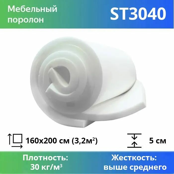 Мебельный эластичный поролон марки ST3040 50x1600x2000мм, плотность 30 кг/м3, жесткость 40 кПа: сравнение цен, характеристики, фото, актуальное наличие и цены.