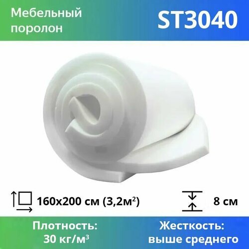 Мебельный эластичный поролон марки ST3040 80x1600x2000мм, плотность 30 кг/м3, жесткость 40 кПа: сравнение цен, характеристики, фото, актуальное наличие и цены.