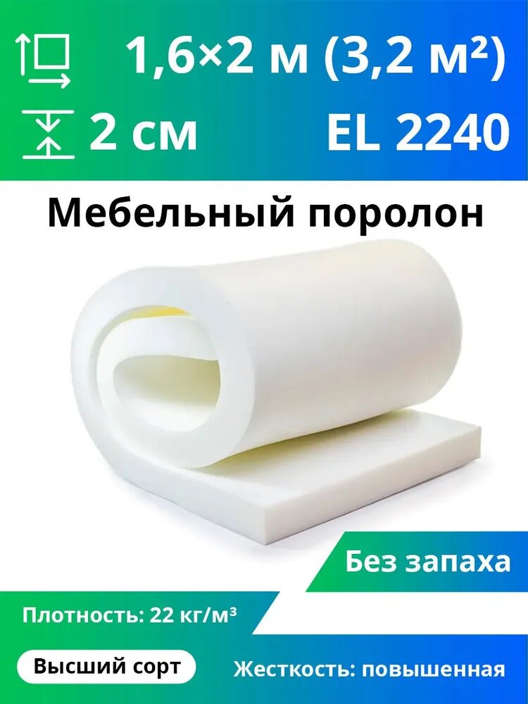 Купить Мебельный поролон повышенной жесткости El 2240 20x1600x2000мм, плотность 22 кг/м3 с доставкой по всей России. Мебельный поролон повышенной жесткости El 2240 20x1600x2000мм, плотность 22 кг/м3: сравнение цен, характеристики, фото, актуальное наличие и цены.