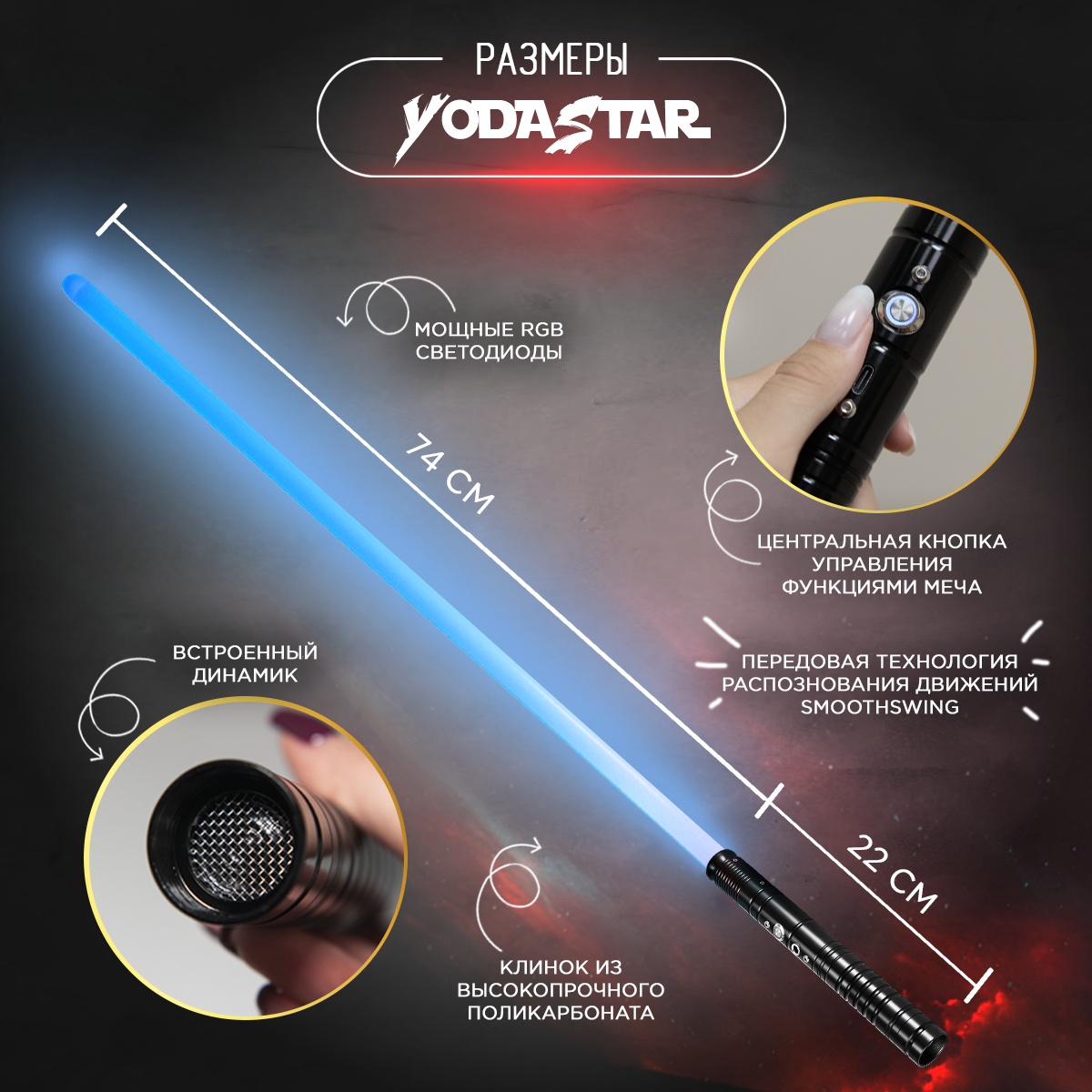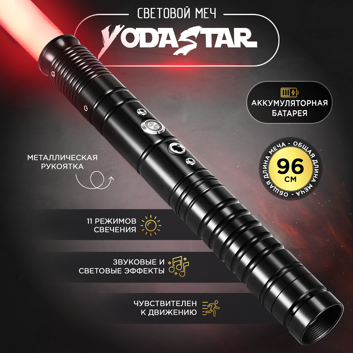 Мечтаете стать героем Звездных войн! У вас есть такой шанс! Отличный подарок мальчику детская игрушка - меч джедая, подойдет для взрослого мужчины и ребенка, который точно не оставит никого равнодушным! Светящийся меч джедая, как игрушка антистресс подходит для подарка на день рождение, тематических игр вдвоем, любых праздников или просто для развлечения. Рукоять светового меча выполнена из алюминиевого сплава с установленным комплектом электроники и перезаряжаемой аккумуляторной батареей, поэтому после покупки игрушки для детей ее можно будет сразу использовать и наслаждаться счастливыми глазами подростка. Материал клинка игрушки для мальчиков, изготовлен из ударопрочного гипоаллергенного поликарбоната. Общая длина лазерного меча составляет 96 см. Катана металлическая изготовлена из экологичных материалов и специфичный запах отсутствует.