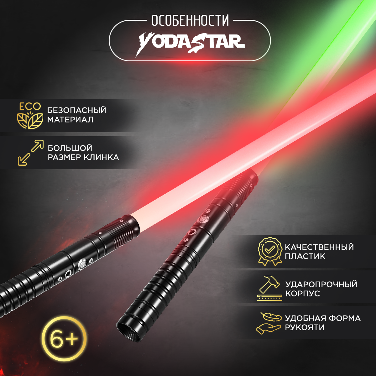 Игрушечное оружие перед отправкой покупателю всегда проверяется на целостность и работоспособность. Для надежной доставки покупателю, интерактивный световой меч Star Wars помещен в подарочную коробку с уплотнителями и дополнительную картонную упаковку.