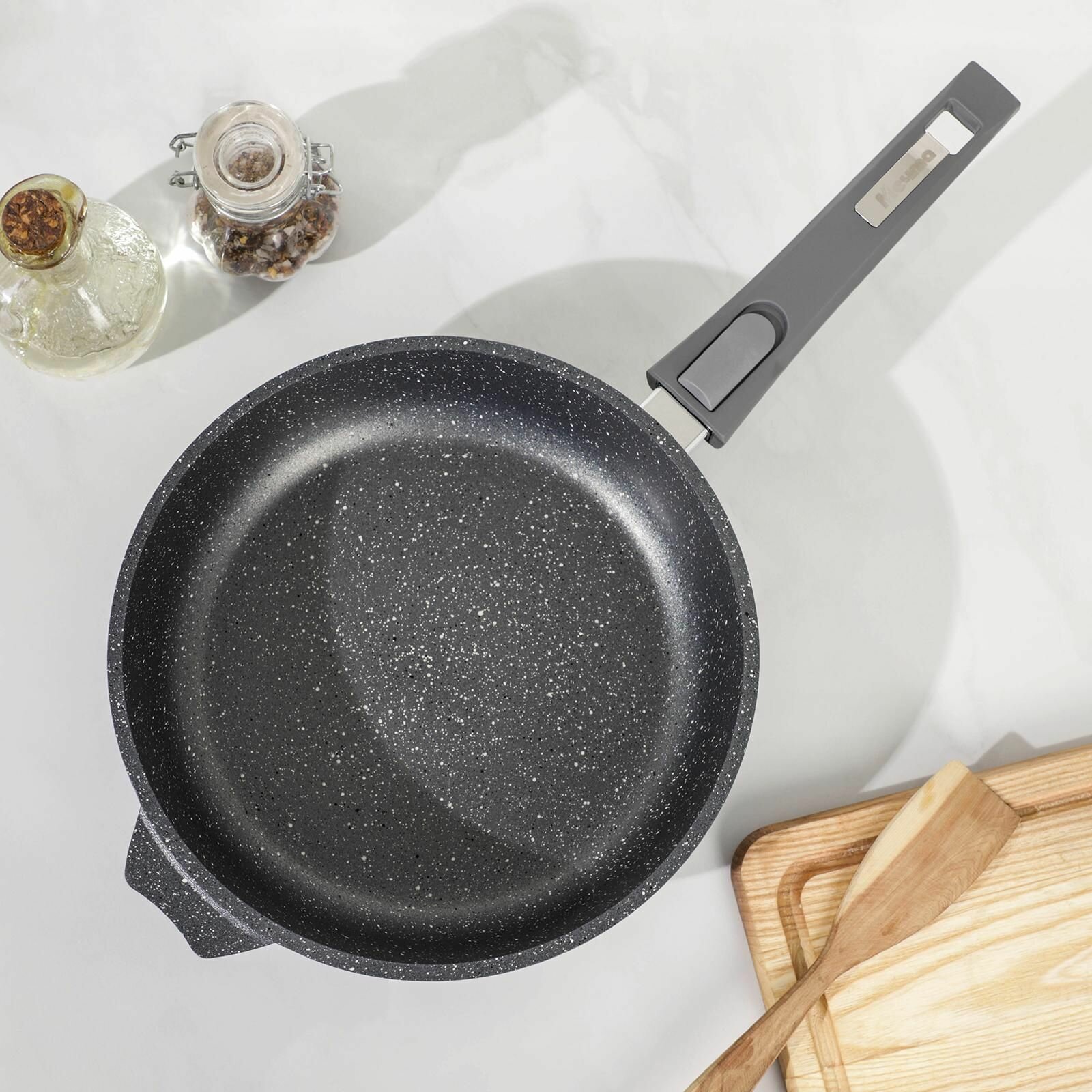 Купить Сковорода Мечта Гранит , d 24 см, съёмная ручка, антипригарное покрытие, алюминий, серая с доставкой по всей России.