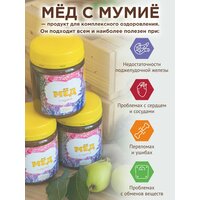 В наши дни мумиё переживает своё второе рождение. Современная медицина уже обратила внимание на его полезные свойства — это уникальное природное веществопомогает бороться с патогенной микрофлорой, вирусами и грибками. Мумиё благотворно действует на весь организм в целом: способствует повышению сопротивляемости иммунитета к различным заболеваниям, помогает стимулировать процесс регенерации, что позволяет сократить период срастания костной ткани, способствует заживлению ран, положительно влияет на желудочно-кишечный тракт. Мёд с мумиё будет полезен тем, кому необходимо повысить выносливость и укрепить иммунитет, нормализовать флору кишечника и обмен веществ. Также, мёд с мумие можно использовать наружно при суставных болях и переломах.
