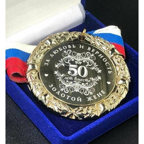 Купить Медаль 50 лет Золотой Жене за Любовь и Верность + именная гравировка на обороте в подарок! с доставкой по всей России.