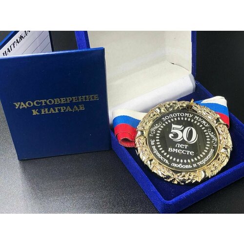 Медаль 50 лет Золотому Мужу за Верность Любовь Терпение. Медаль металлическая с возможность нанесения именной гравировки на обороте в подарок! (мы свяжемся с Вами через личный кабинет маркетплейса для уточнения вашего индивидуального текста). В комплекте: медаль из стали, лента, бархатный футляр с ложементом, наградное удостоверение. Все наши медали изготовлены из прочной стали, страна-производитель: Россия.