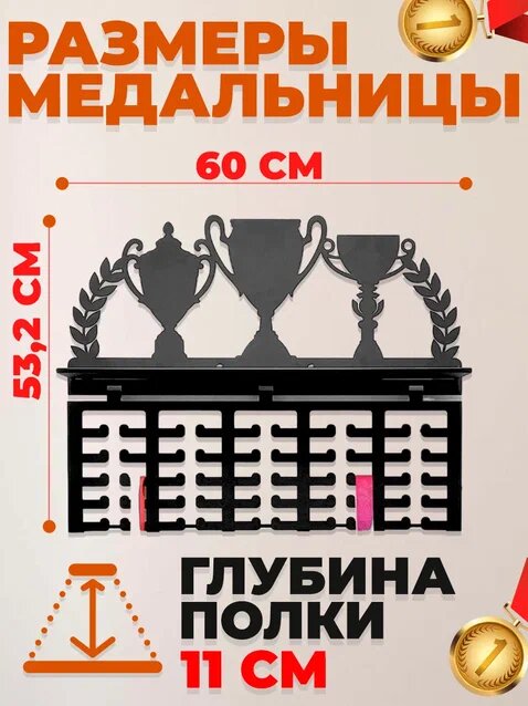 Медальница с полкой для кубков, наград, грамот, металлическая: сравнение цен, характеристики, фото, актуальное наличие и цены.
