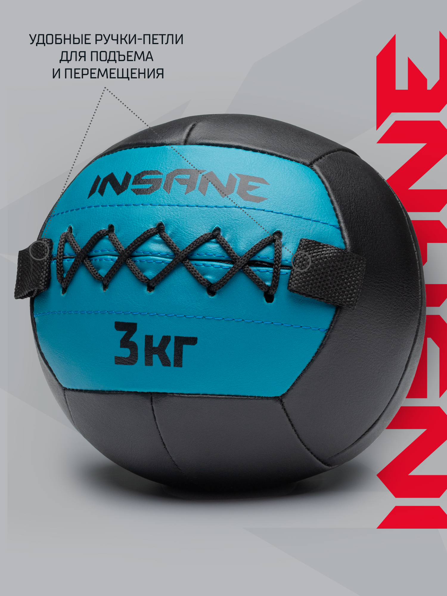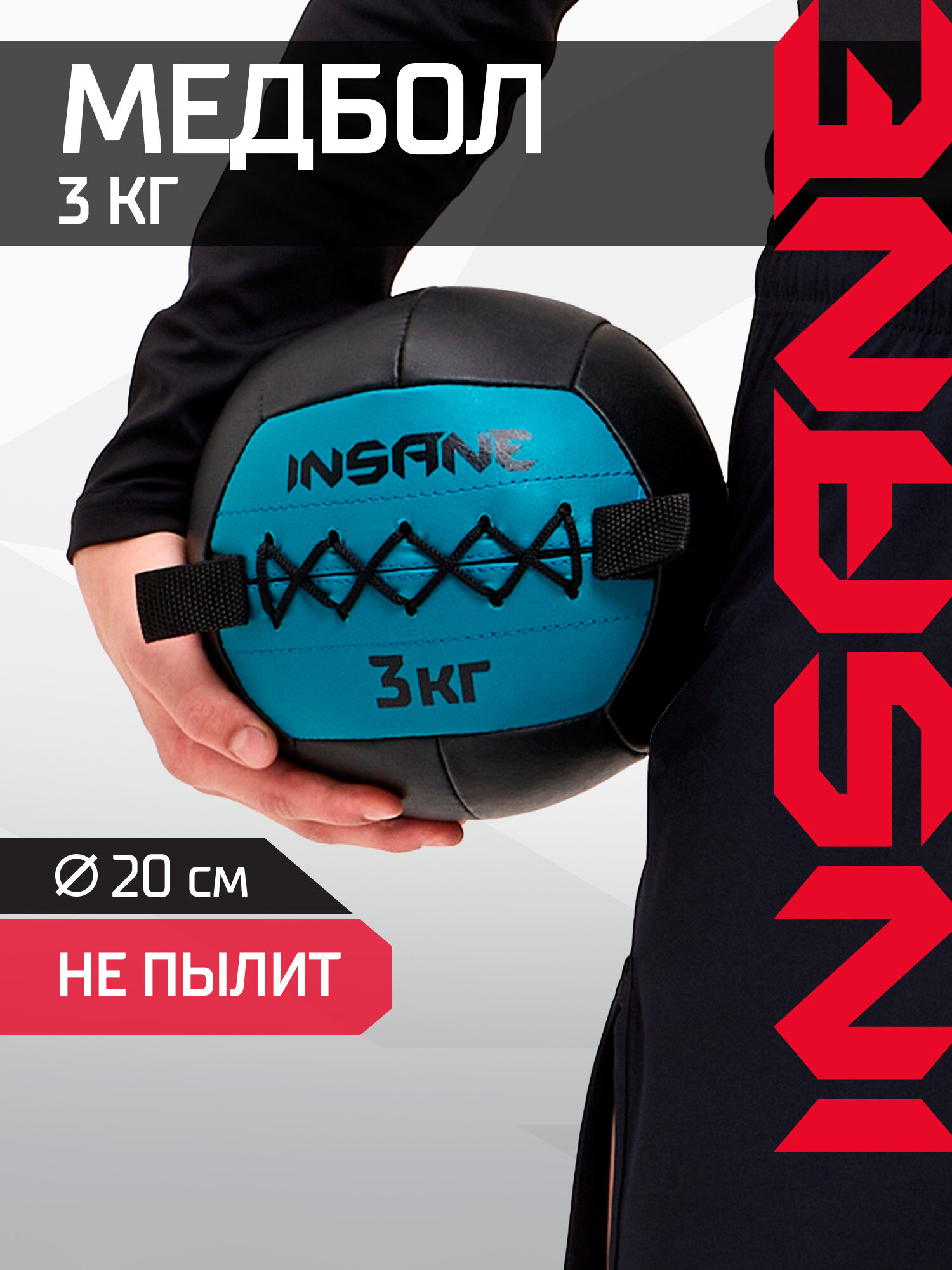 Купить Медбол спортивный для фитнеса Insane IN24-WB100, вес 3 кг, цвет голубой с доставкой по всей России.