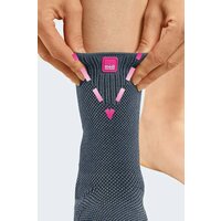 Бандаж на голеностопный сустав – Levamed – предназначен для лечения боли и стабилизации голеностопного сустава при травмах мягких тканей (мышцы, связки, сухожилия), артрите и артрозе, синовите, субъективной нестабильности, а также после операций на голеностопном суставе (посттравматический/послеоперационный артрит). Компрессионная ткань и силиконовые вставки оказывают проприоцептивное действие, что способствует более быстрому рассасыванию отека и ликвидации воспаления. Бандаж состоит из анатомически связанной компрессионной манжеты и силиконовых клюшкообразных вставок, прикрывающих лодыжки сзади и снизу. Полотно бандажа связано из высоко технологичного материала с применением технологий Clima Comfort, Clima Fresh и Comfort Zone. Clima Comfort обеспечивает оптимальную влажность кожных покровов и температурный комфорт в любое время года. Clima Fresh – внедрение в ткань ионов серебра, негативно действующих на микробов, что предотвращает образование неприятного запаха даже при длительном использовании бандажа. Comfort Zone – вязка с учетом анатомического рельефа, что обеспечивает оптимальную посадку бандажа и максимальный комфорт. Бандаж имеет универсальный дизайн: подходит и на левый и на правый сустав. Рекомендации по уходу: