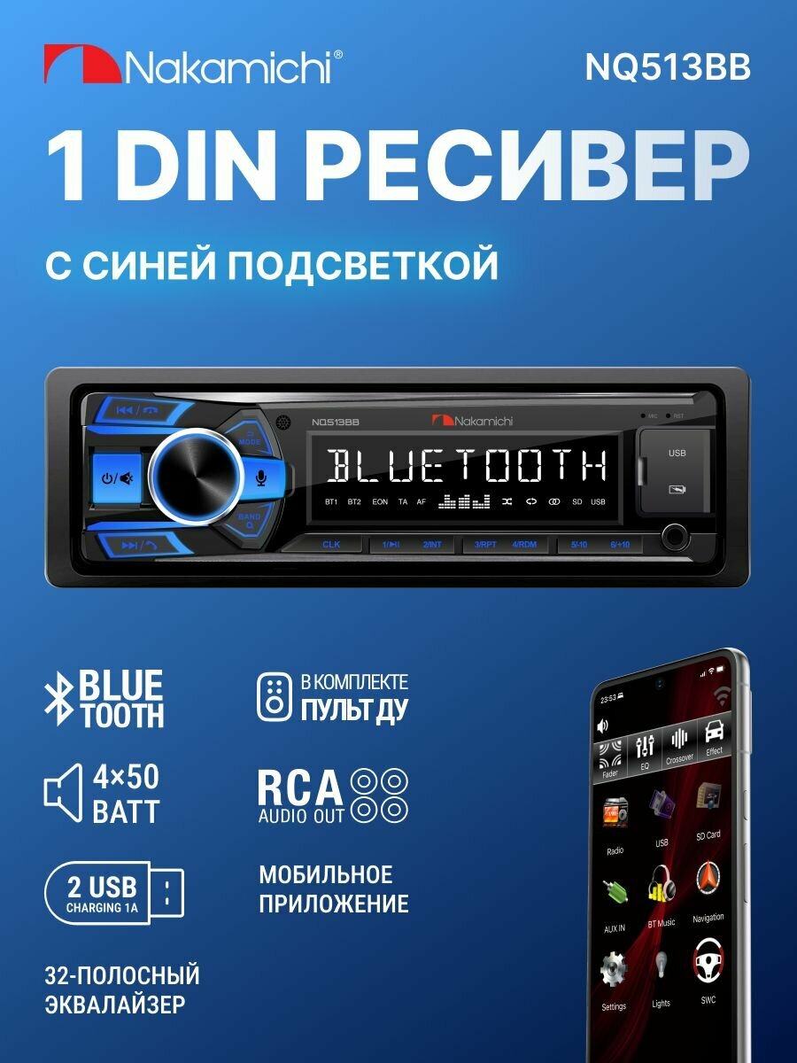 Ресивер-USB Nakamichi NQ513BB USB, AUX, Bluetooth, FM/AM, 4х50 Вт, 1DIN: сравнение цен, характеристики, фото, актуальное наличие и цены.