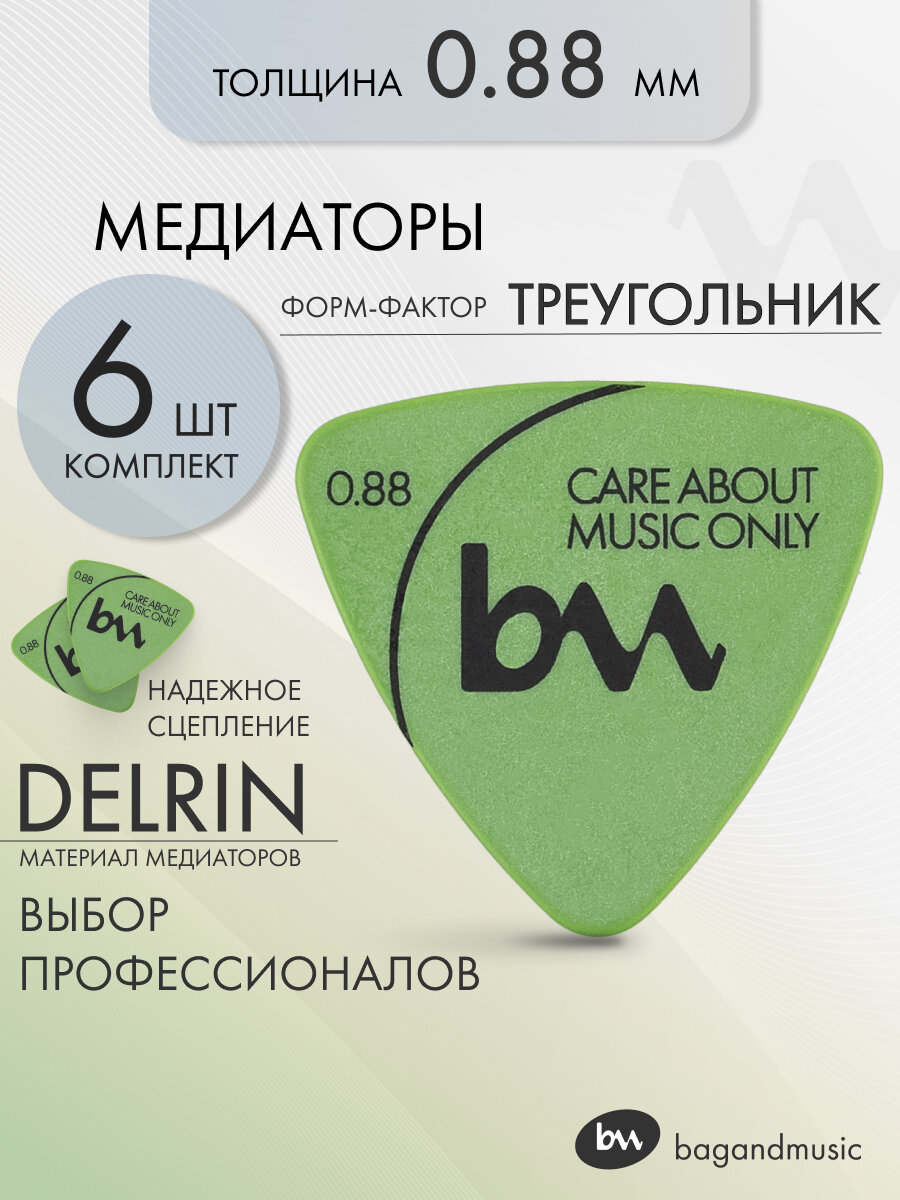 Купить Медиаторы Bagandmusic, треугольные, делрин, противоскользящие, 0.88мм, 6шт, зеленые с доставкой по всей России.