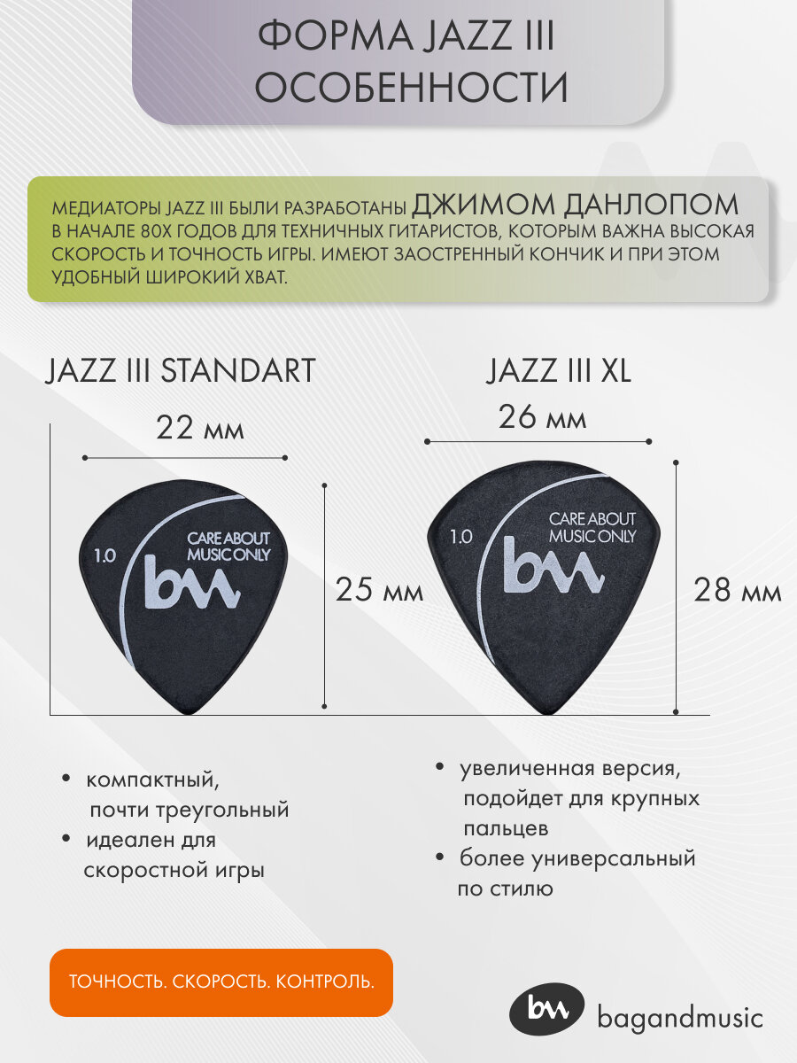 Купить Медиаторы Jazz III Standart (1,0 мм) для гитары, черный — 100шт, Delrin с доставкой по всей России. Медиаторы Jazz III Standart (1,0 мм) для гитары, черный — 100шт, Delrin: сравнение цен, характеристики, фото, актуальное наличие и цены.