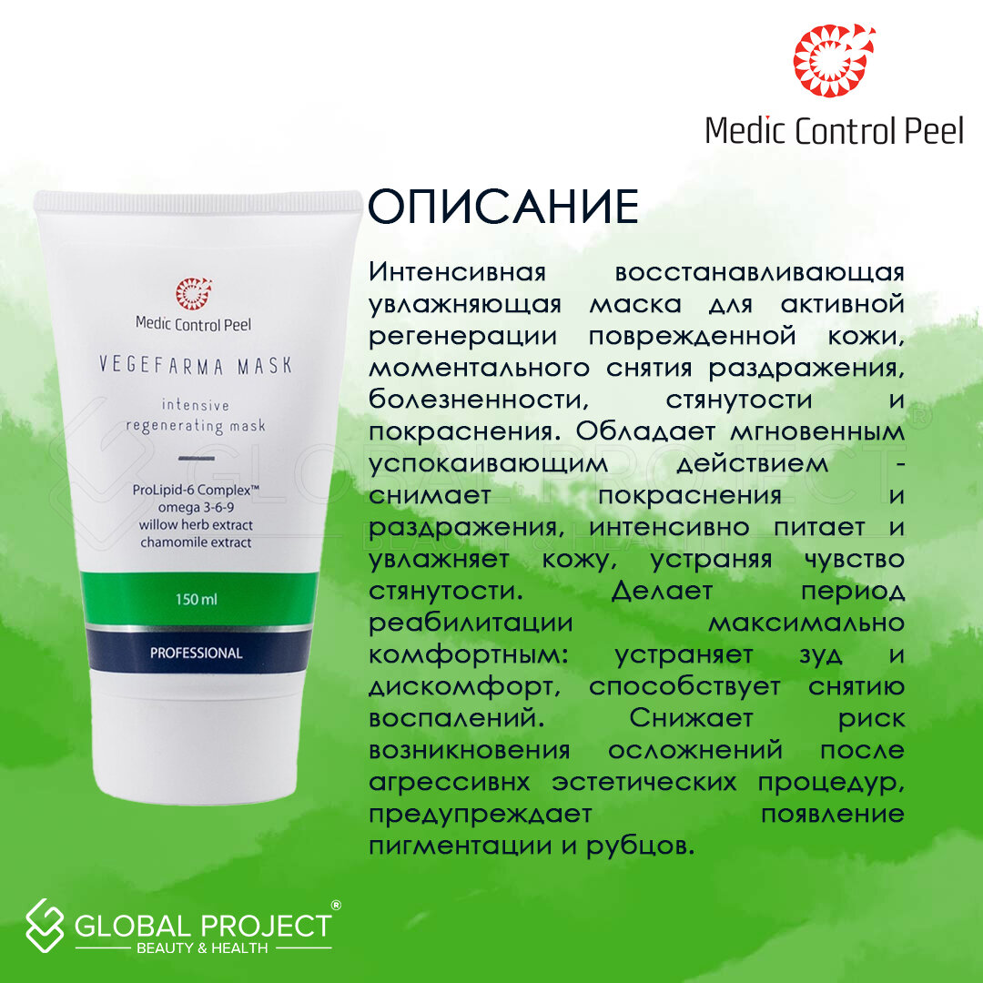 Косметическая маска для лица Medic Control Peel – идеальный уход за кожей лица. Восстанавливающая маска для лица VEGEFARMA MASK с улучшенным составом – обновлённая доработанная и улучшенная формула с уникальным комплексом ProLipid-6 Complex, направленная на скорейшее восстановление, интенсивное заживление, устранение покраснений, возвращение коже состояние комфорта.