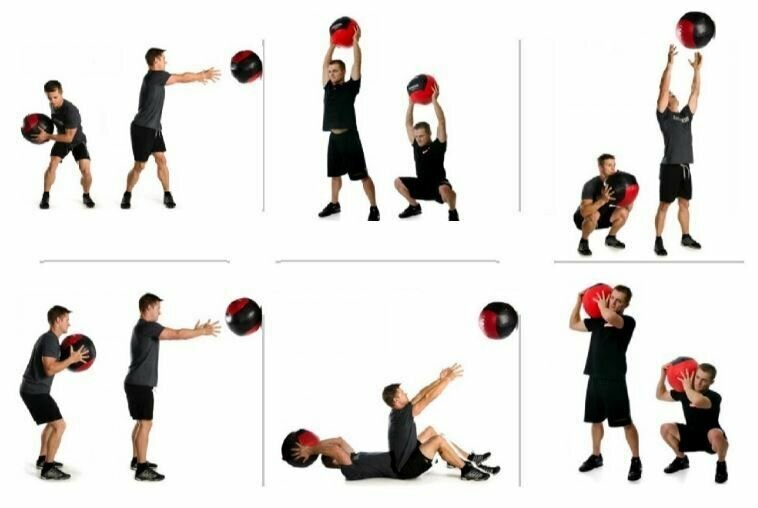 - переходите к базовым ТА движениям: имитируйте упражнения со штангой и делайте интенсивные рывки и толчки с медболом.