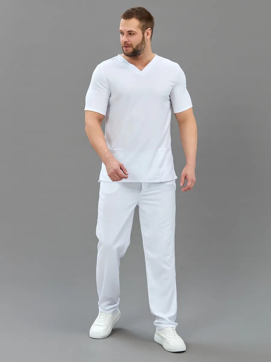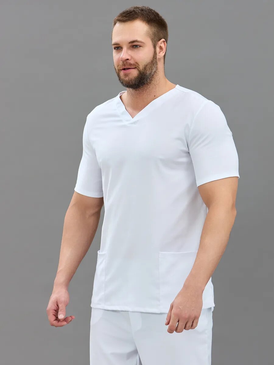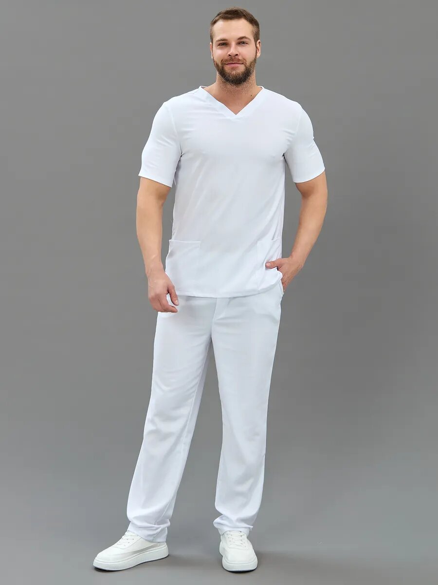 Медицинский мужской костюм Бисер «Стрейч Премиум», вискоза, спандекс, полиэфир, белый: сравнение цен, характеристики, фото, актуальное наличие и цены.
