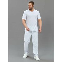 Купить Медицинский мужской костюм Бисер «Стрейч Премиум», вискоза, спандекс, полиэфир, белый с доставкой по всей России.