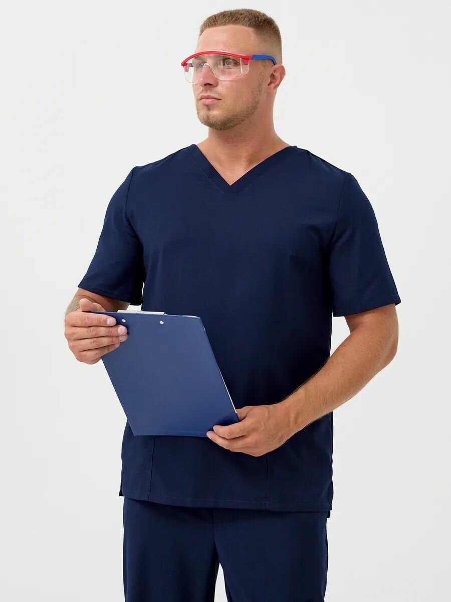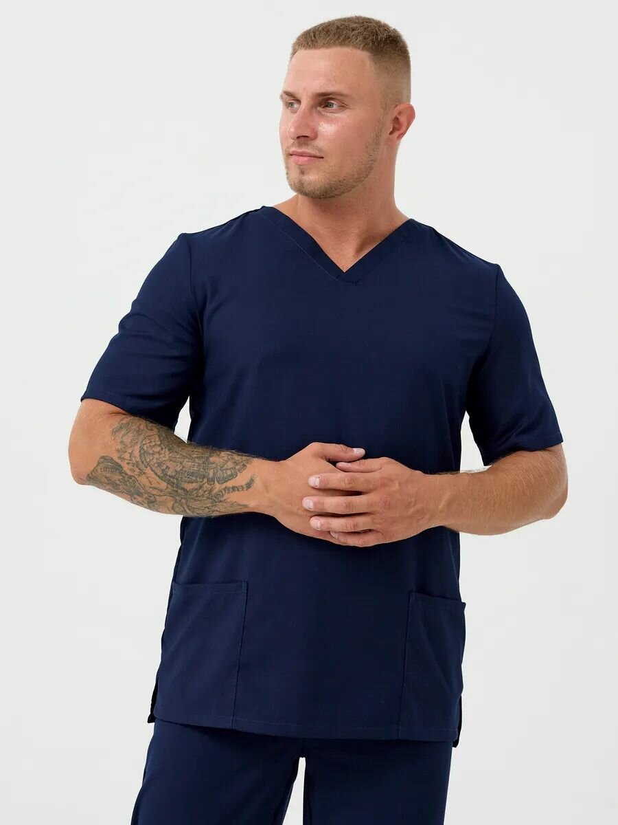 Медицинский мужской костюм Бисер «Стрейч Премиум», вискоза, спандекс, полиэфир, синий: сравнение цен, характеристики, фото, актуальное наличие и цены.