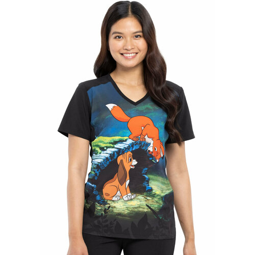Медицинский топ с принтом «Лис и пёс» от бренда CHEROKEE TOONIFORMS, США