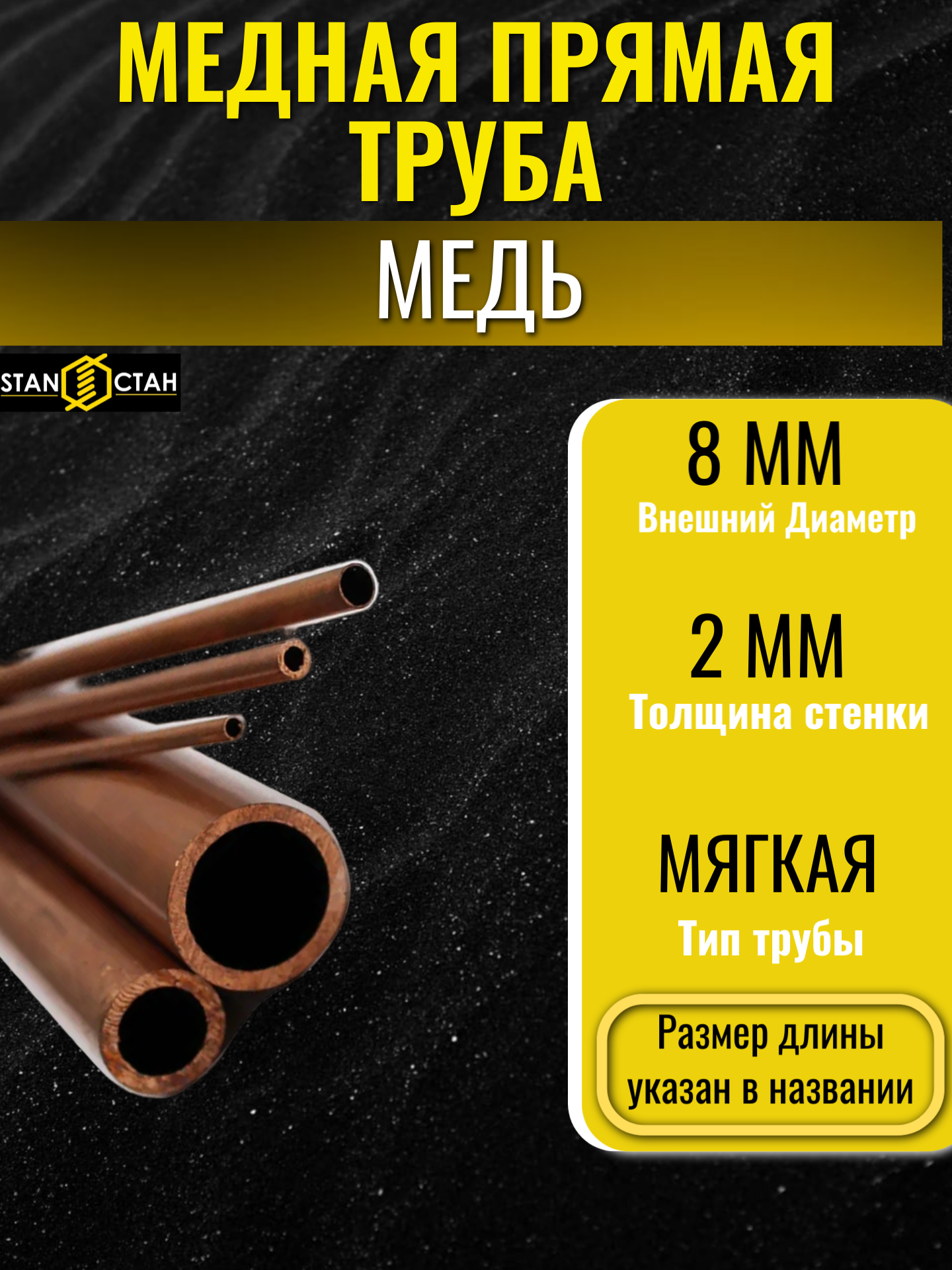 Купить Медная мягкая труба , диаметр 8 мм, стенка 2мм, длина 1300 мм с доставкой по всей России. Медная мягкая труба , диаметр 8 мм, стенка 2мм, длина 1300 мм: сравнение цен, характеристики, фото, актуальное наличие и цены.