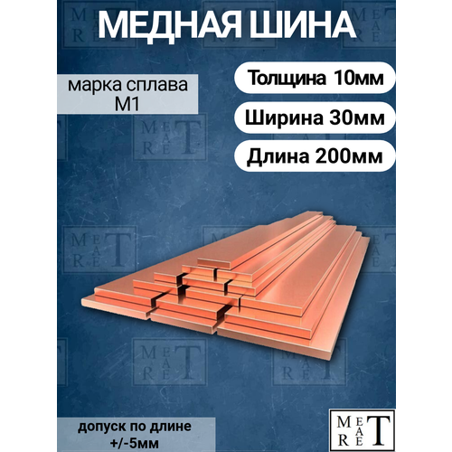 Медная шина М1т толщина 10мм, ширина 30мм, длина 20см медная полоса, шина медная электротехническая — это высококачественное изделие, предназначенное для использования в электротехнических проектах. Она изготовлена из меди, что обеспечивает отличную электропроводность и эффективность в передаче тока.
