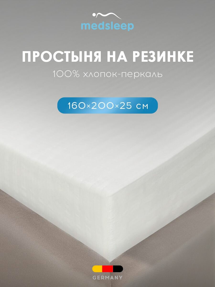 Medsleep Простыня на резинке двуспальная «Линдау» перкаль, хлопок, 160×200 +25, белая: сравнение цен, характеристики, фото, актуальное наличие и цены.