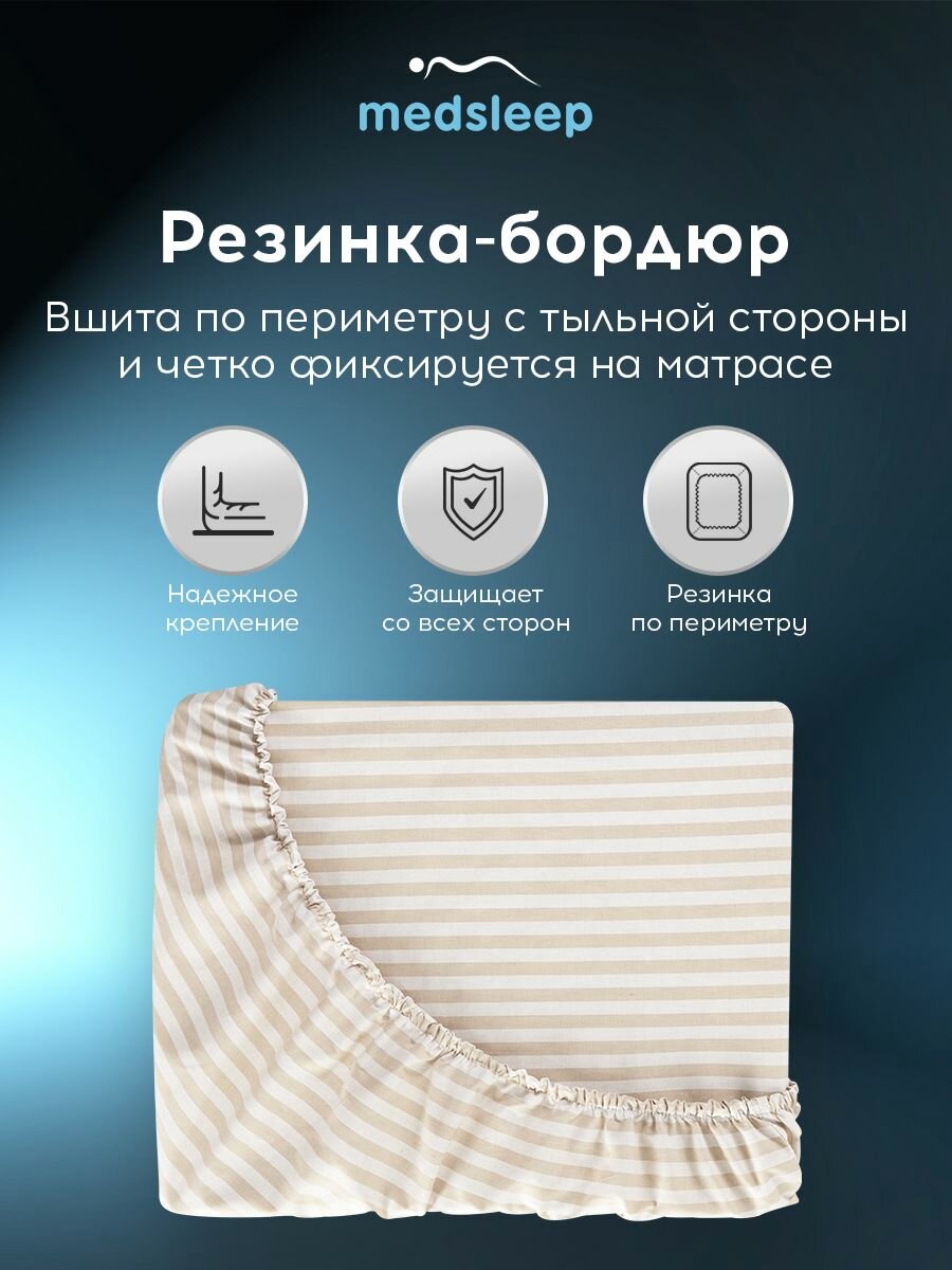 Купить Medsleep Простыня на резинке двуспальная «Линдау» перкаль, хлопок, 160×200 +25, светло-бежевая с доставкой по всей России.