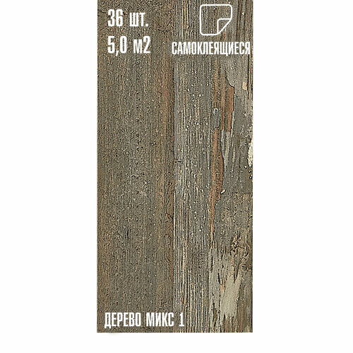 Купить Мега-комплект 36 шт. Самоклеящейся ПВХ плитки LAKO DECOR «Дерево микс 1», толщина 2мм, 5м² с доставкой по всей России.