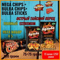 Купить Мега Набор очень острых снеков. (1250 грамм) чипсы Бульба 5 + соломка Бульба 5 + Mega Chips Острые с тайским перцем 5 с доставкой по всей России.