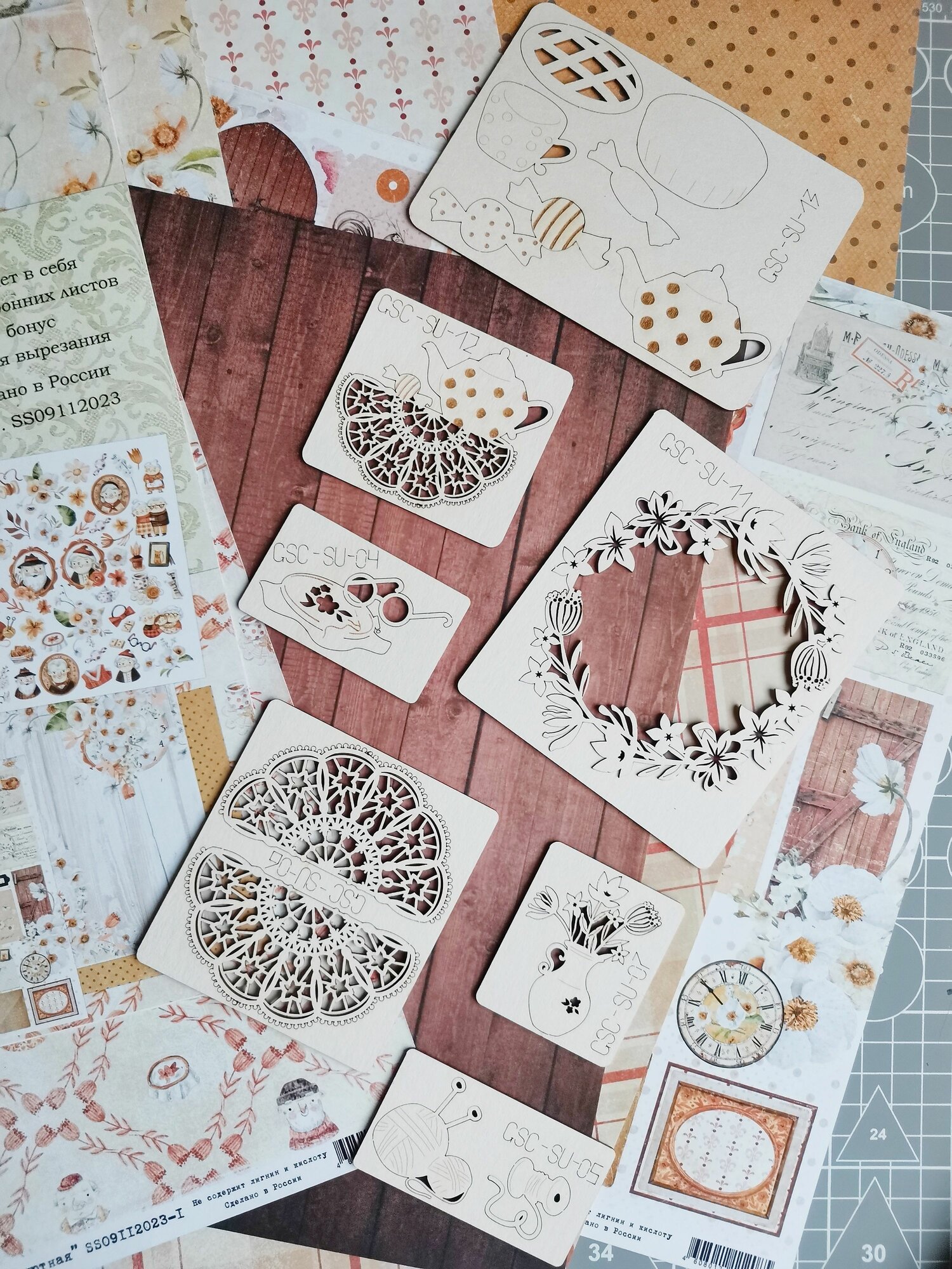Мега-сет: полная коллекция чипборда для скрапбукинга от Goldenchip к коллекции бумаги "Самая уютная" от Summer Studio.