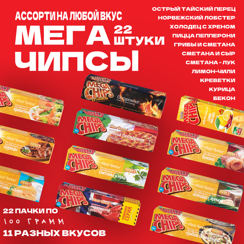 Купить Мегачипсы Mega Chips ассорти микс вкусов 8 видов, 25 штук по 100 г с доставкой по всей России. Мегачипсы Mega Chips ассорти микс вкусов 8 видов, 25 штук по 100 г: сравнение цен, характеристики, фото, актуальное наличие и цены.