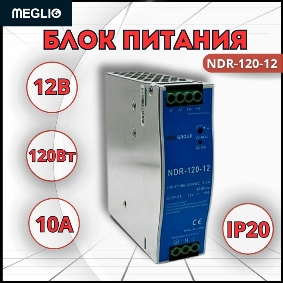 Купить MEGLIO Импульсный блок питания постоянного тока NDR-120-12 на DIN-рейку 12В 10А 120Вт с доставкой по всей России. MEGLIO Импульсный блок питания постоянного тока NDR-120-12 на DIN-рейку 12В 10А 120Вт: сравнение цен, характеристики, фото, актуальное наличие и цены.